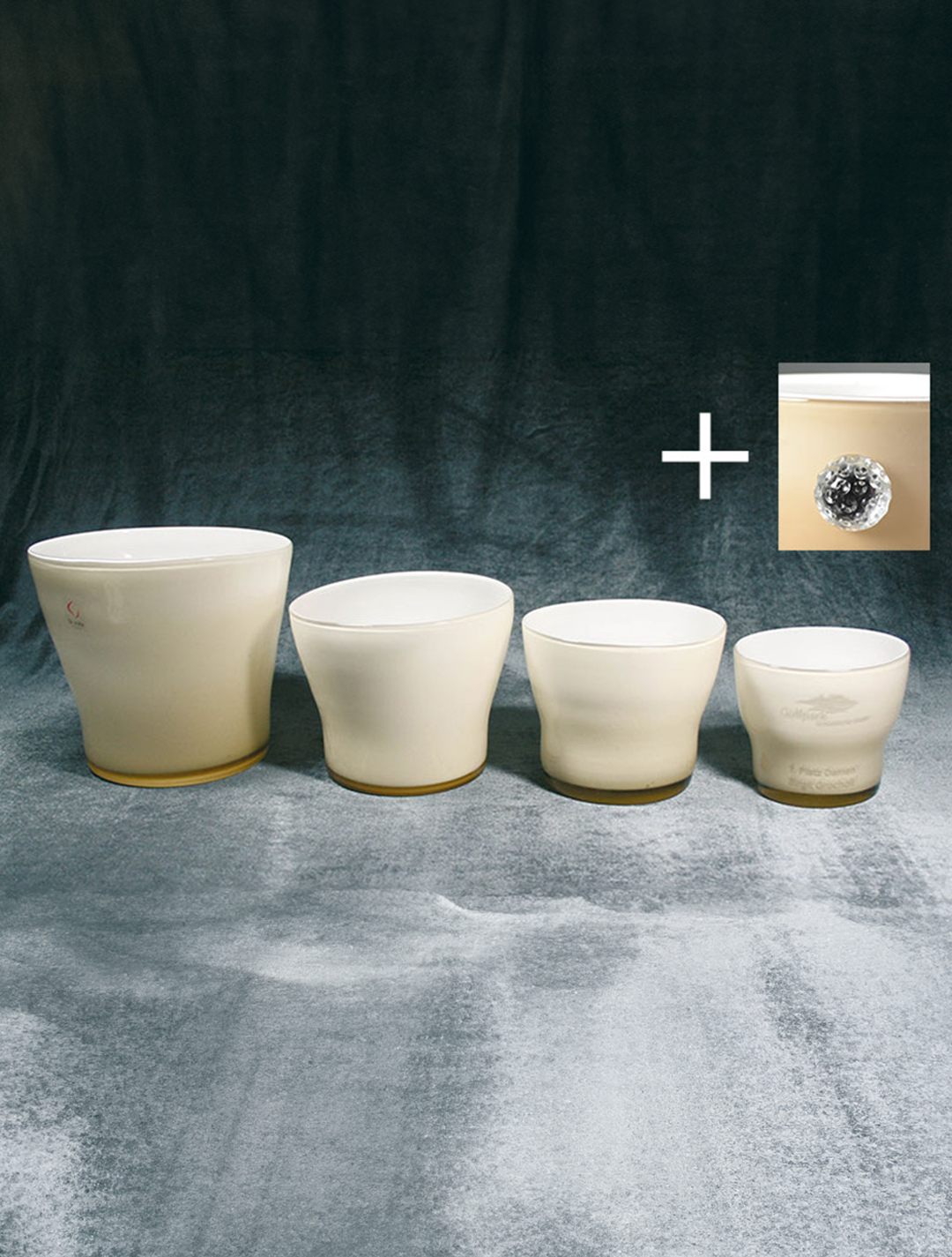 Sehr dekorative Windlichter in aufwändiger Glastechnik. Optional auch mit ½ Kristallglasball