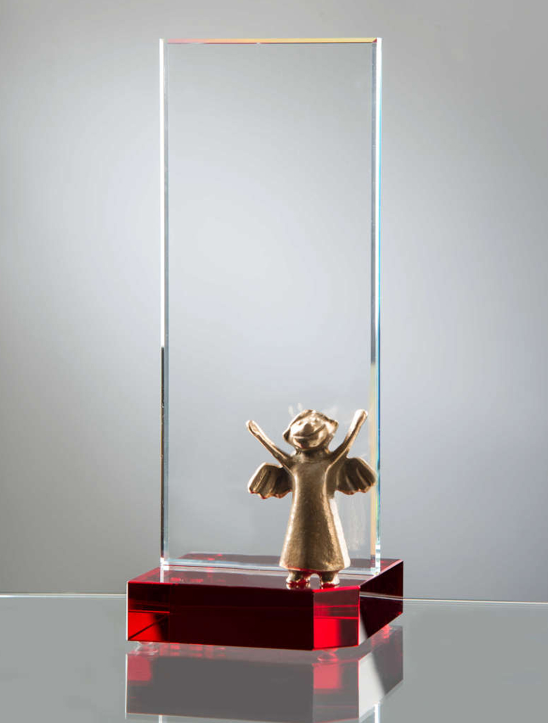Optisches Glas auf massiven Glassockeln mit Engelchen P01002B