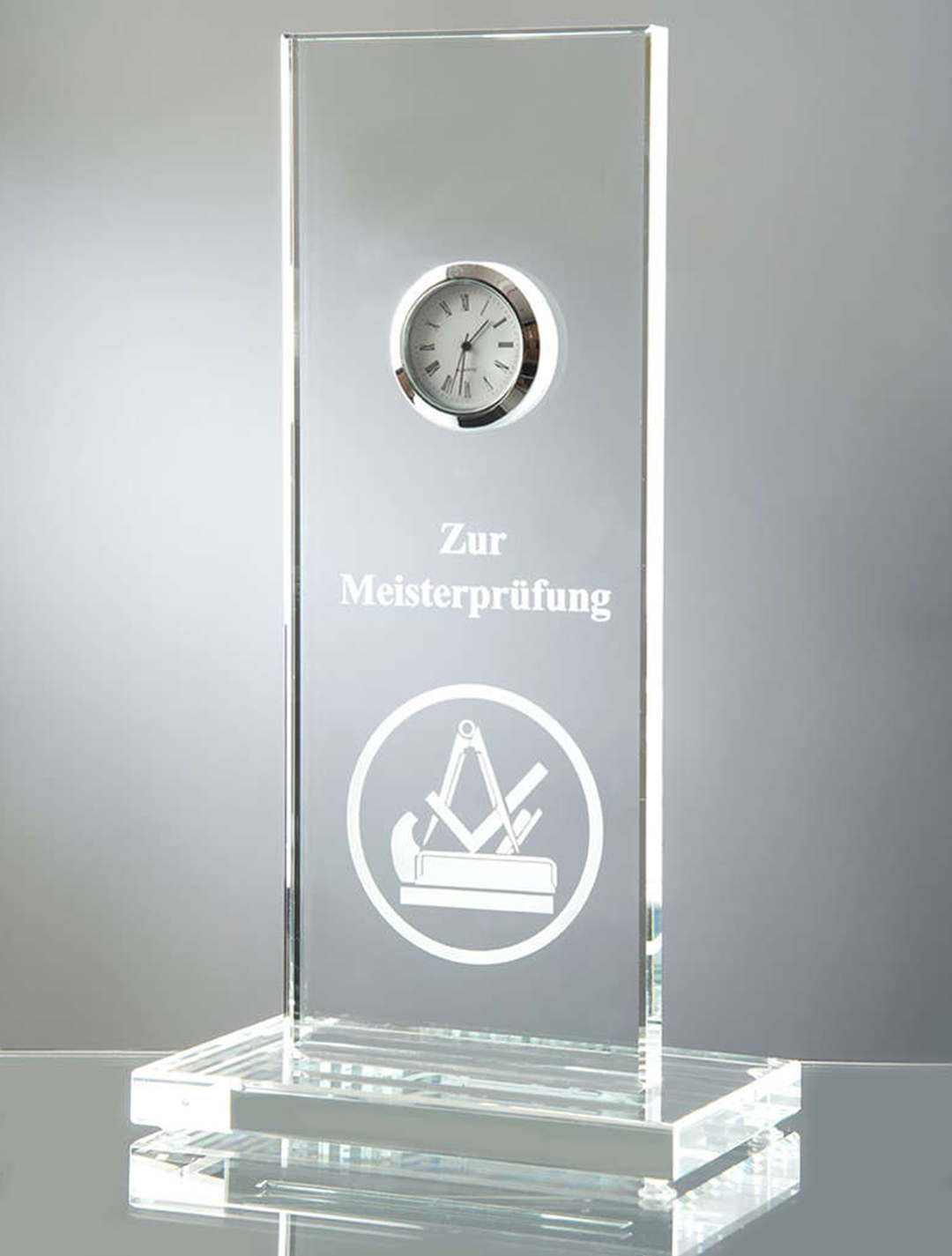 Optisches Glas mit neutralem Uhraufsteller zur individuellen Gravur P01098B