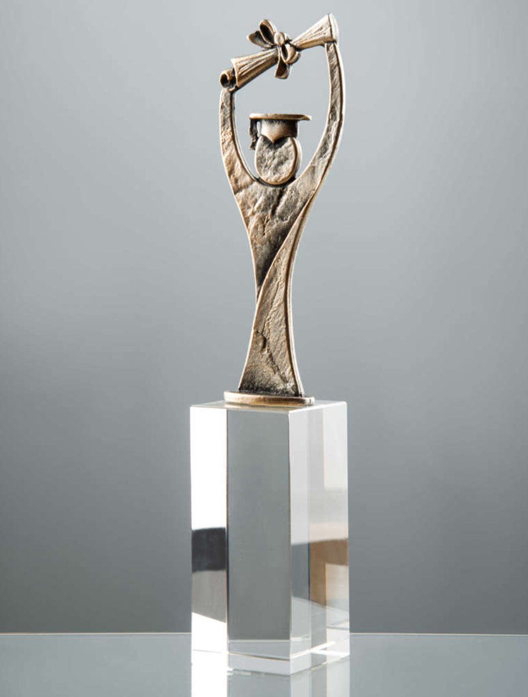 Figur „Gewinner“ aus Metallguss auf massivem Glasquader P01006A