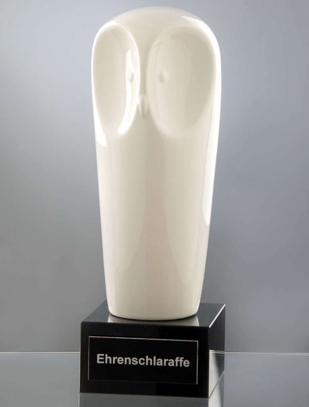 Eulen aus Keramik in 4 Größen auf schwarzen Marmorsockeln XXX