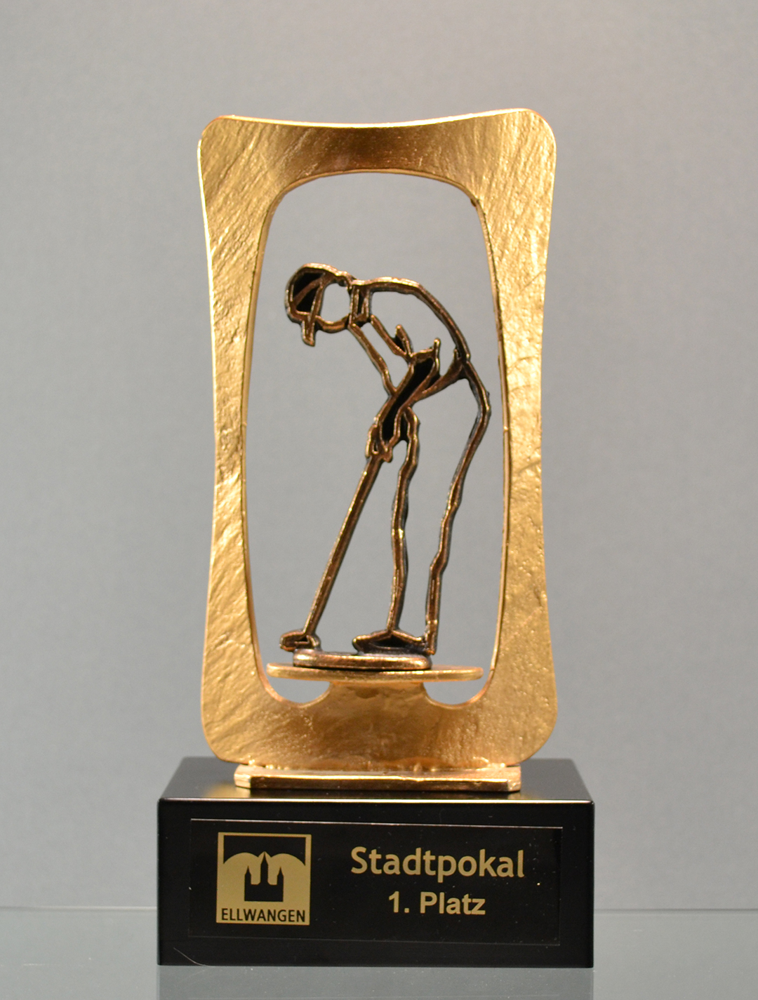 Golffigur in massivem goldfarbenen Metallrahmen G86145