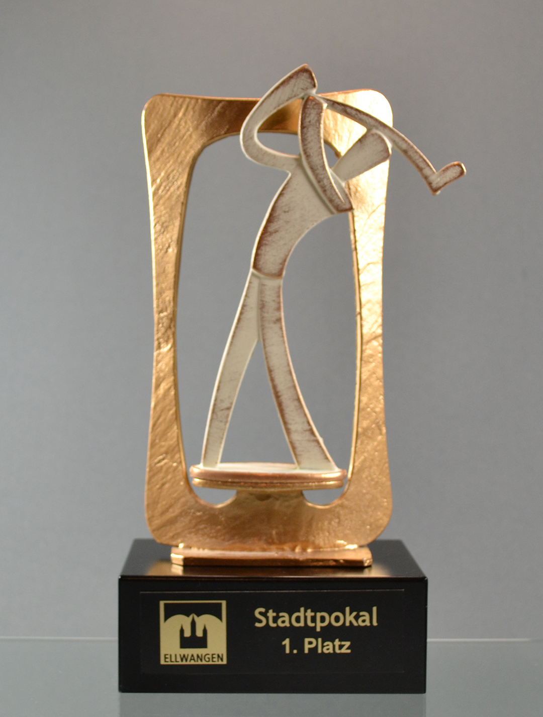 Golffigur in massivem goldfarbenen Metallrahmen G86146