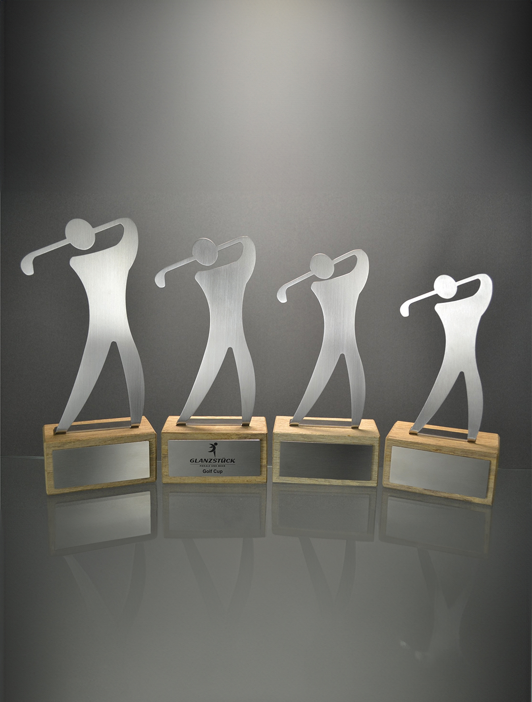 Edelstahlfiguren auf massivem Eichesockel G83150