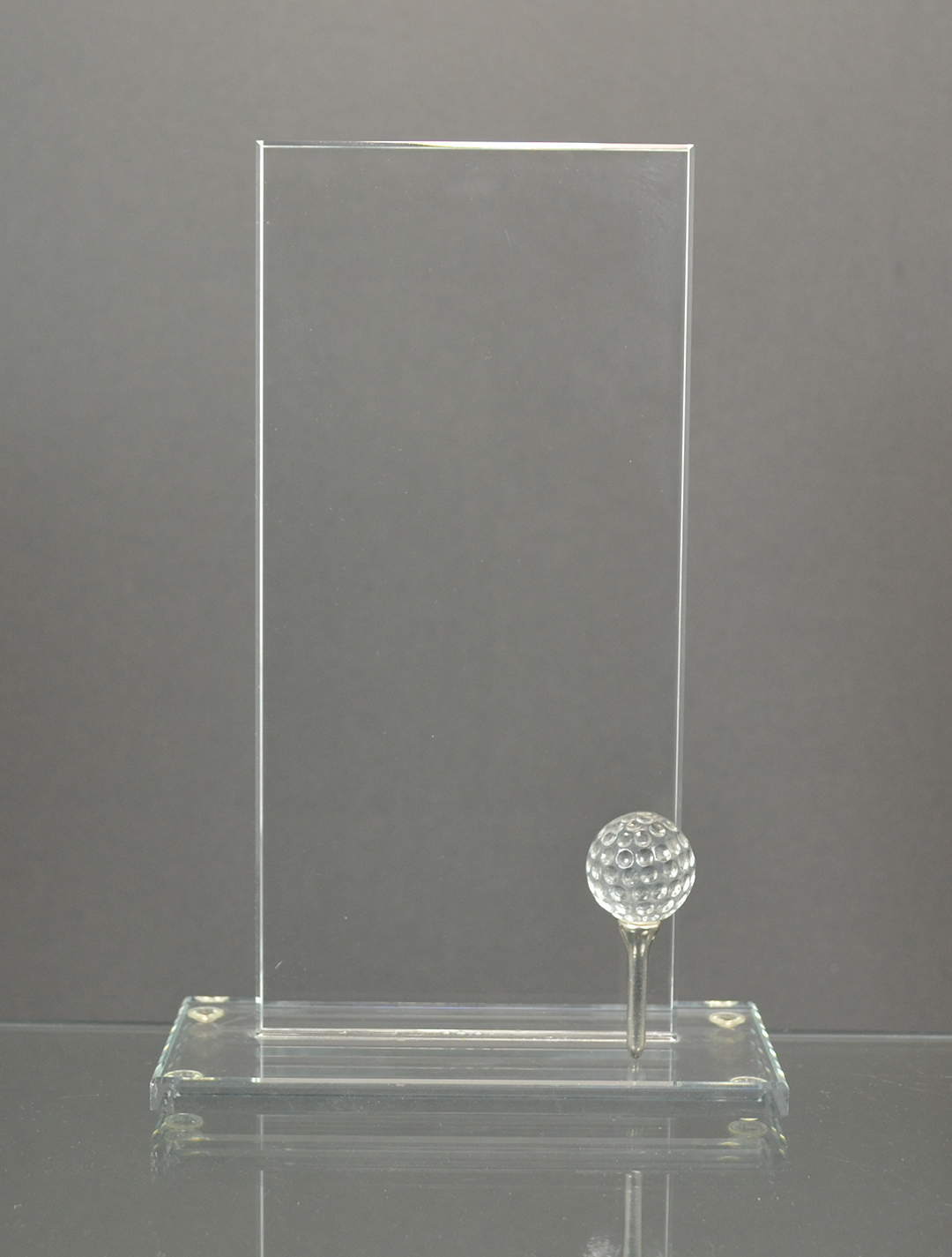 Schicker Aufsteller mit kleinem verchromten Tee und Golfball. G81385