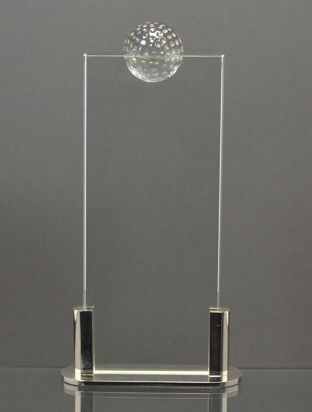 Glasplatte in versilberten Metallständer und ½ Golfball G81456