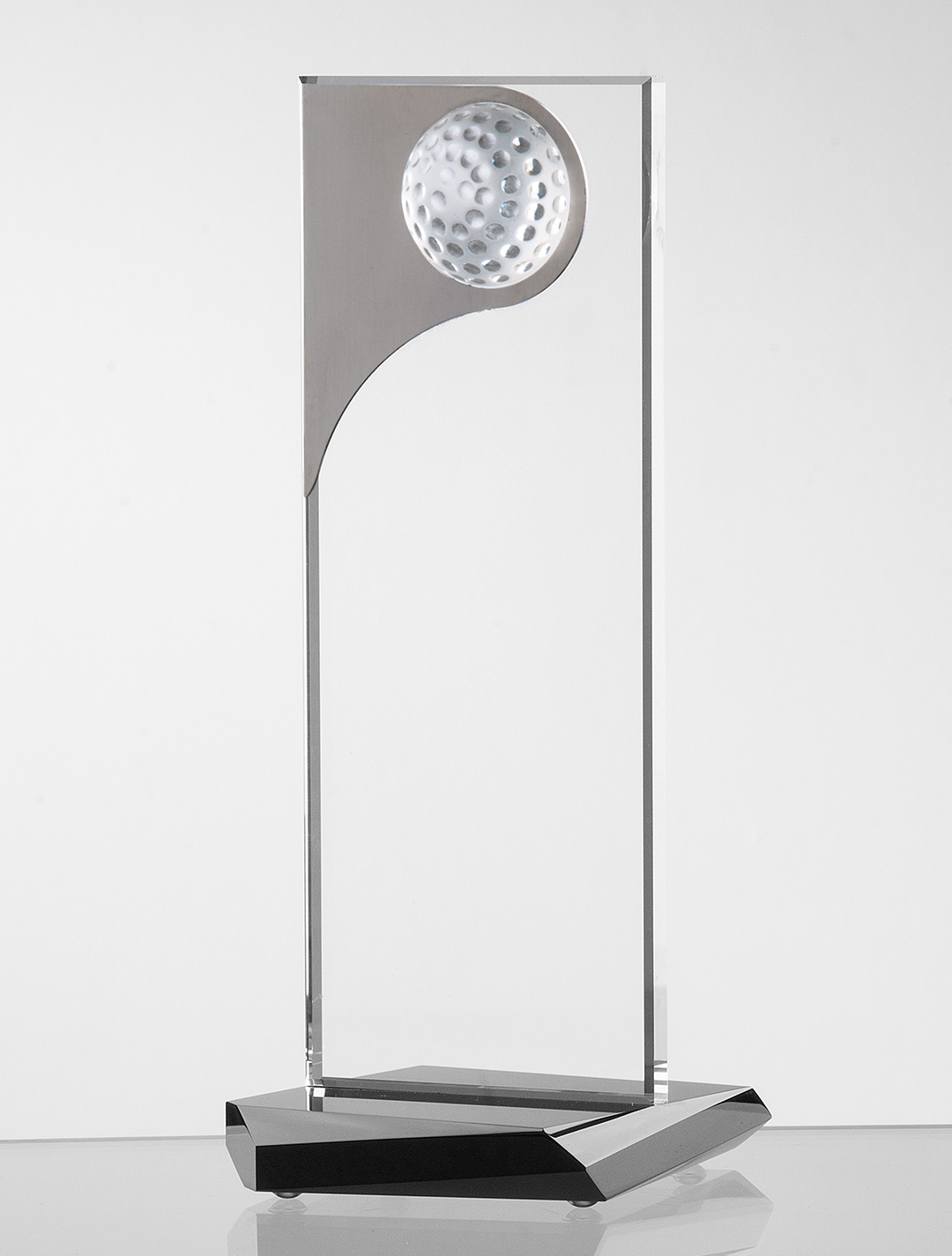 Edelstahlelement mit Kristallglasball, Glasplatte auf massivem Schwarzglassockel mit interessanten Schliffen G81188