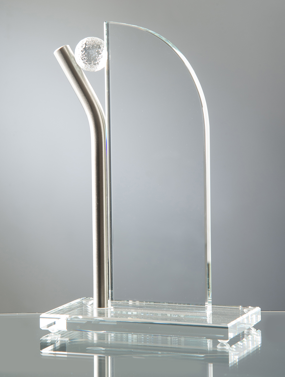 Seitlich gebogene Edelstahlstange mit eingesetztem Golfball G81133