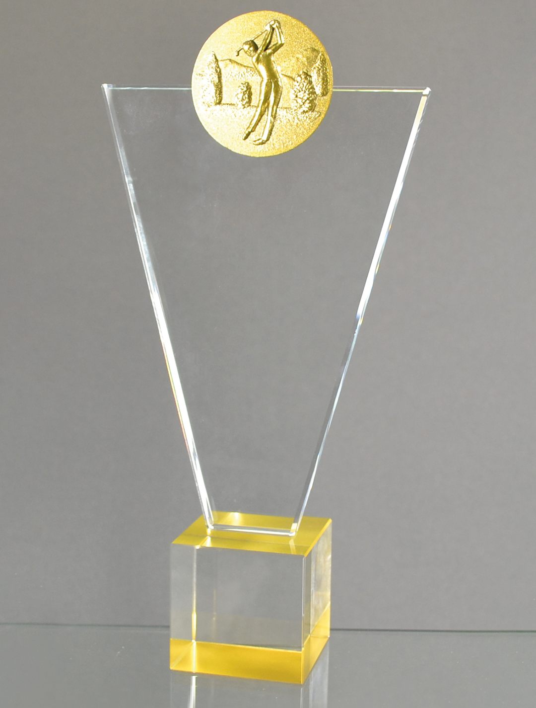 Glaswürfel in 5 x 5 cm als Sockel und überstehende Medaille G81323