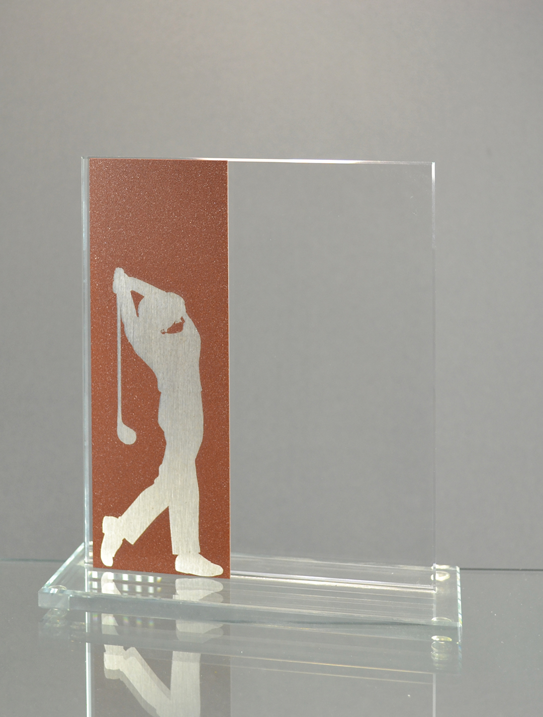 Metallstreifen 6 cm breit mit Golfer. Als Wanderpokal (Gewinnerschilder hinter Metall) G81313