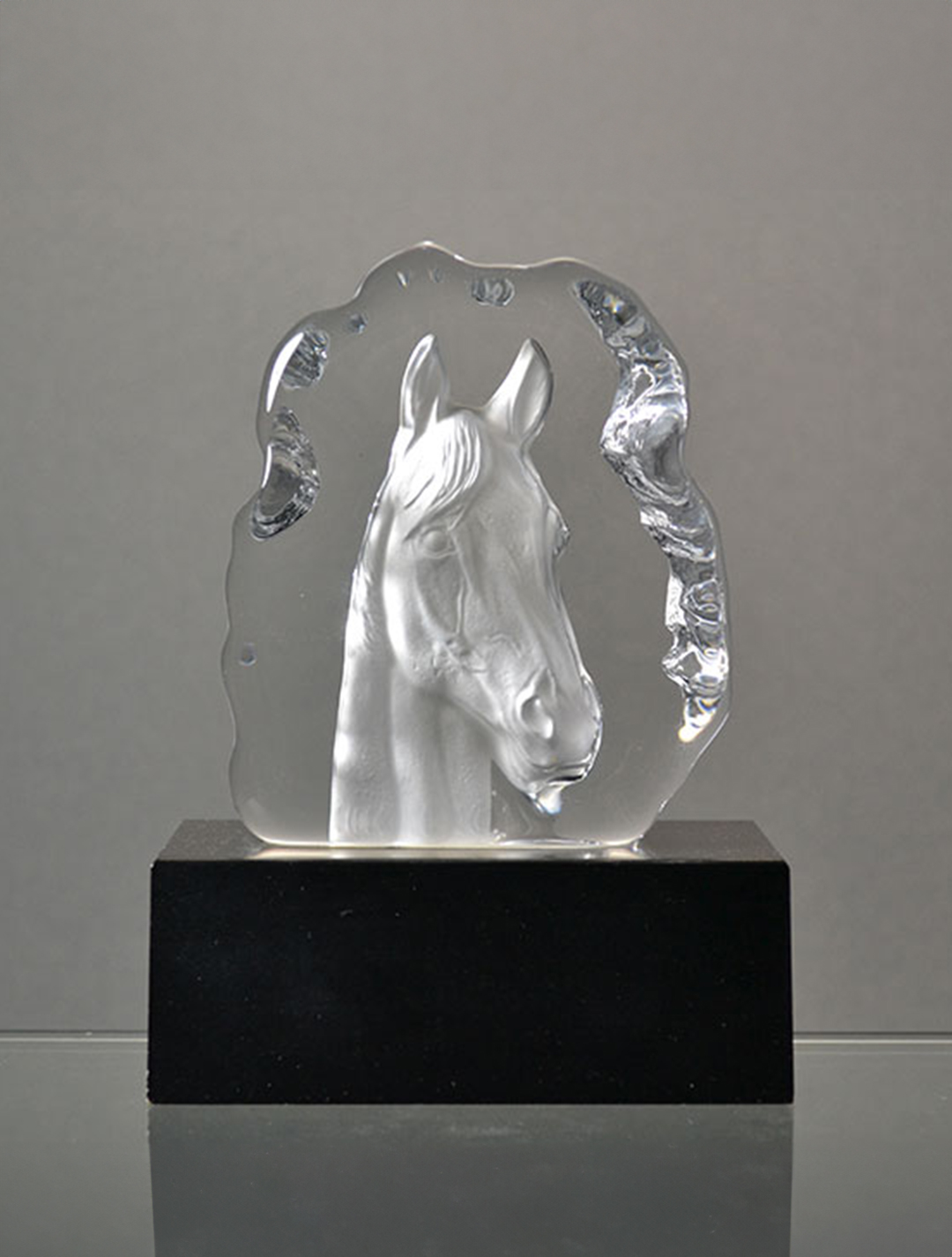 Glasblock gegossen inkl. Sockel L5505-Pferdekopf