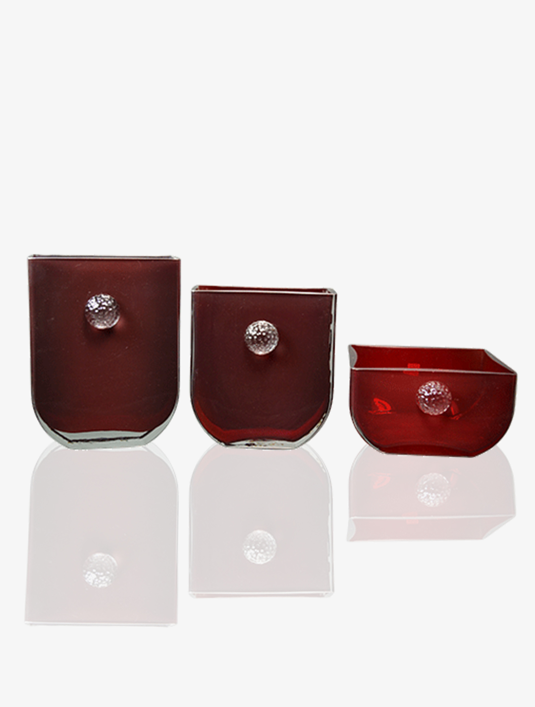 Rotes Glas in schwerer Qualität incl. ½ Golfball.