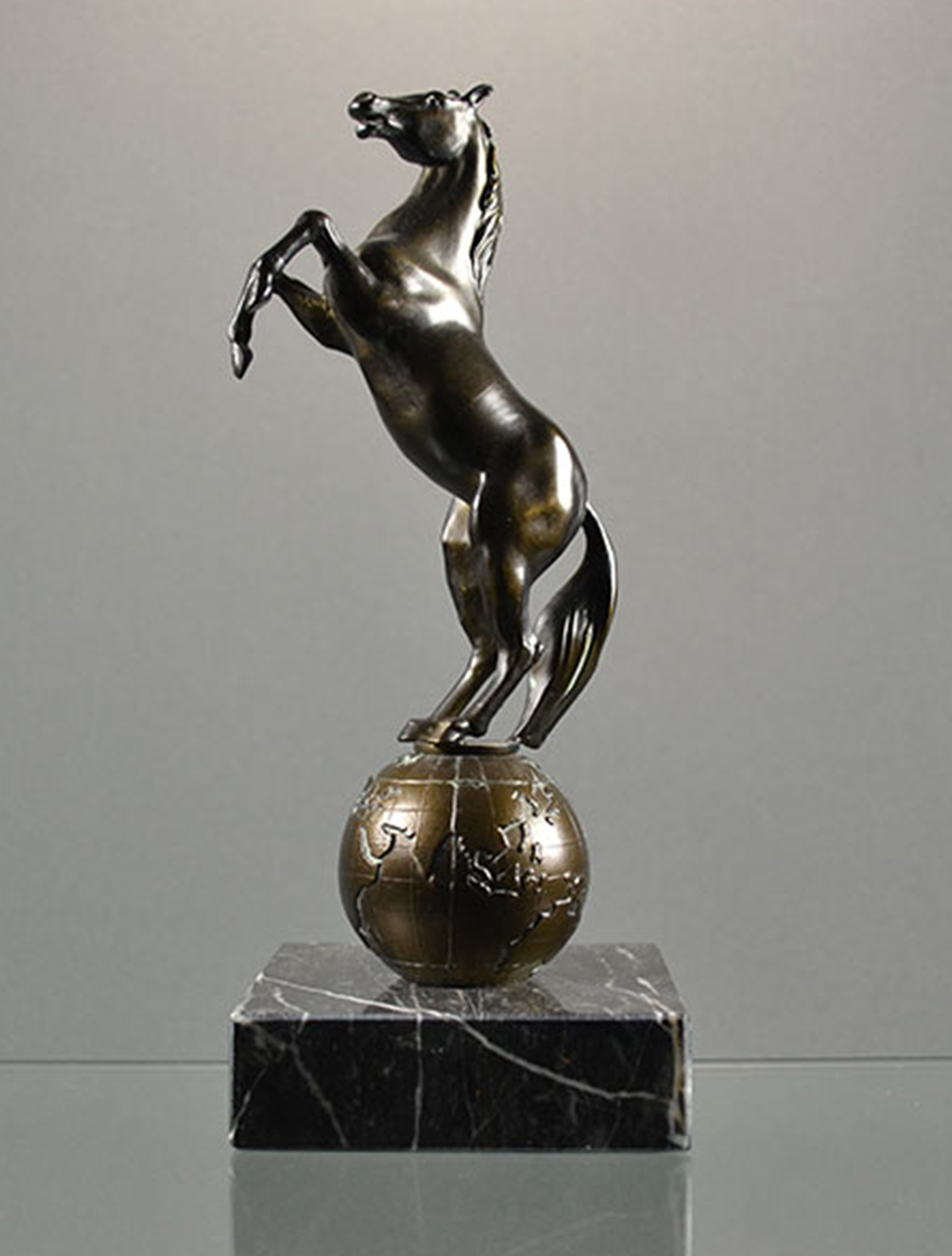 Pferd auf Weltkugel aus schwerem Metallguß L5551