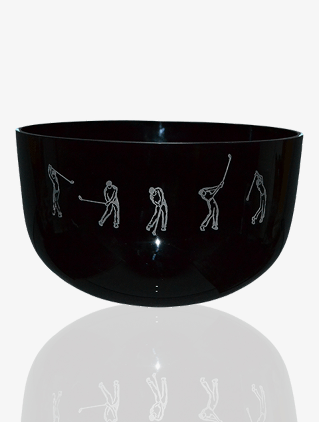 Sehr schöne schwere Glasschalen mit Gravur „Der Schwung“