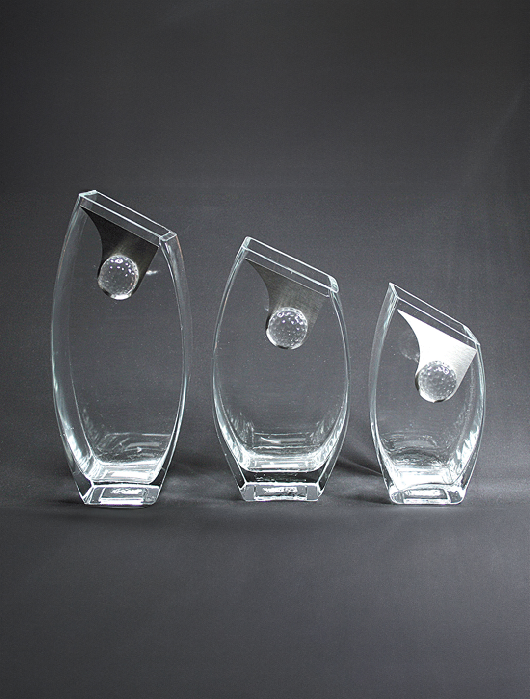 Schrägvasen mit Edelstahlelement und ½ Glasgolfball