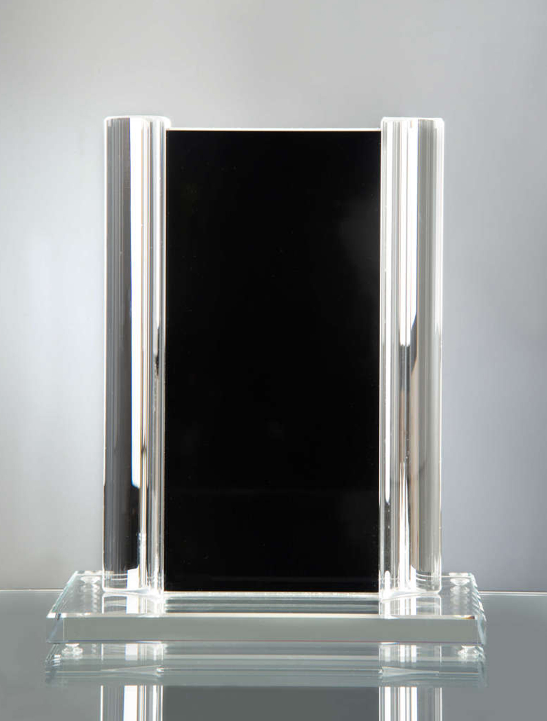 Wuchtige 3-eck Stangen aus Klarglas mit schwarzer Platte S01150