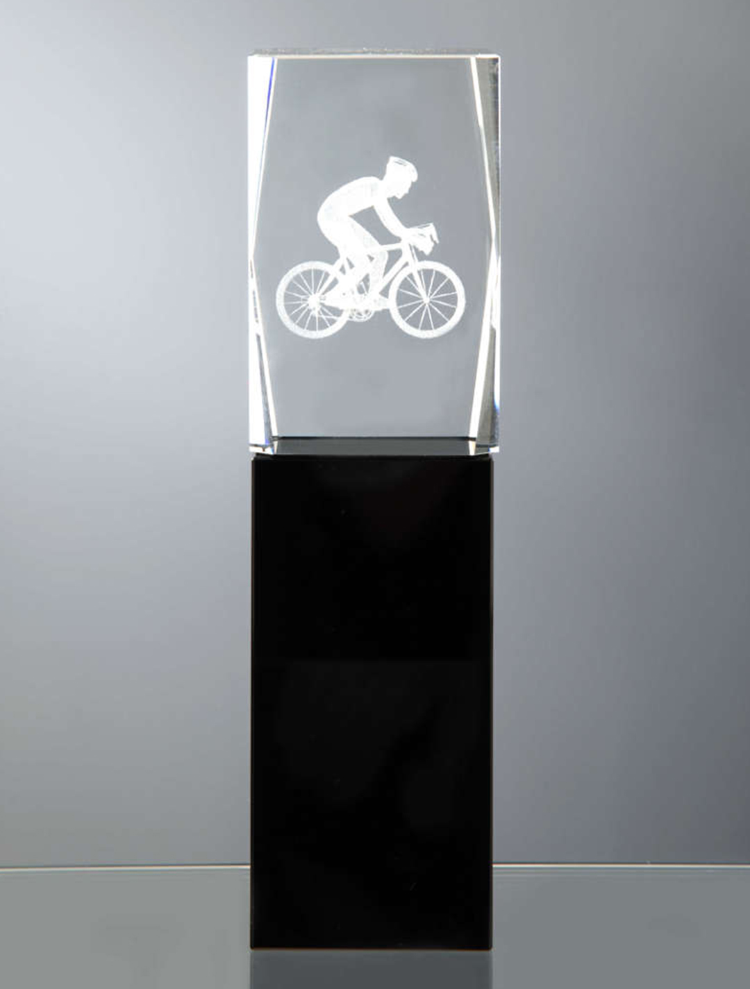 Quader mit innengelasertem Fahrrad-Motiv S01259